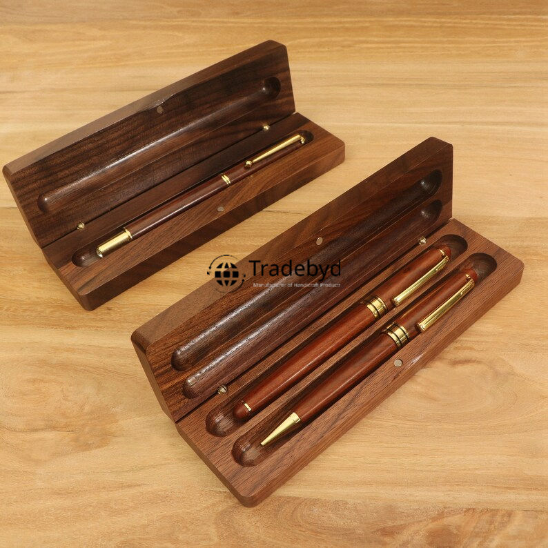 กล่องปากกาไม้แข็งขัดเงาแบบพรีเมี่ยมอุปกรณ์จัดระเบียบโต๊ะสำนักงานที่หรูหราสินค้าเครื่องเขียนส่วนบุคคลของขวัญ