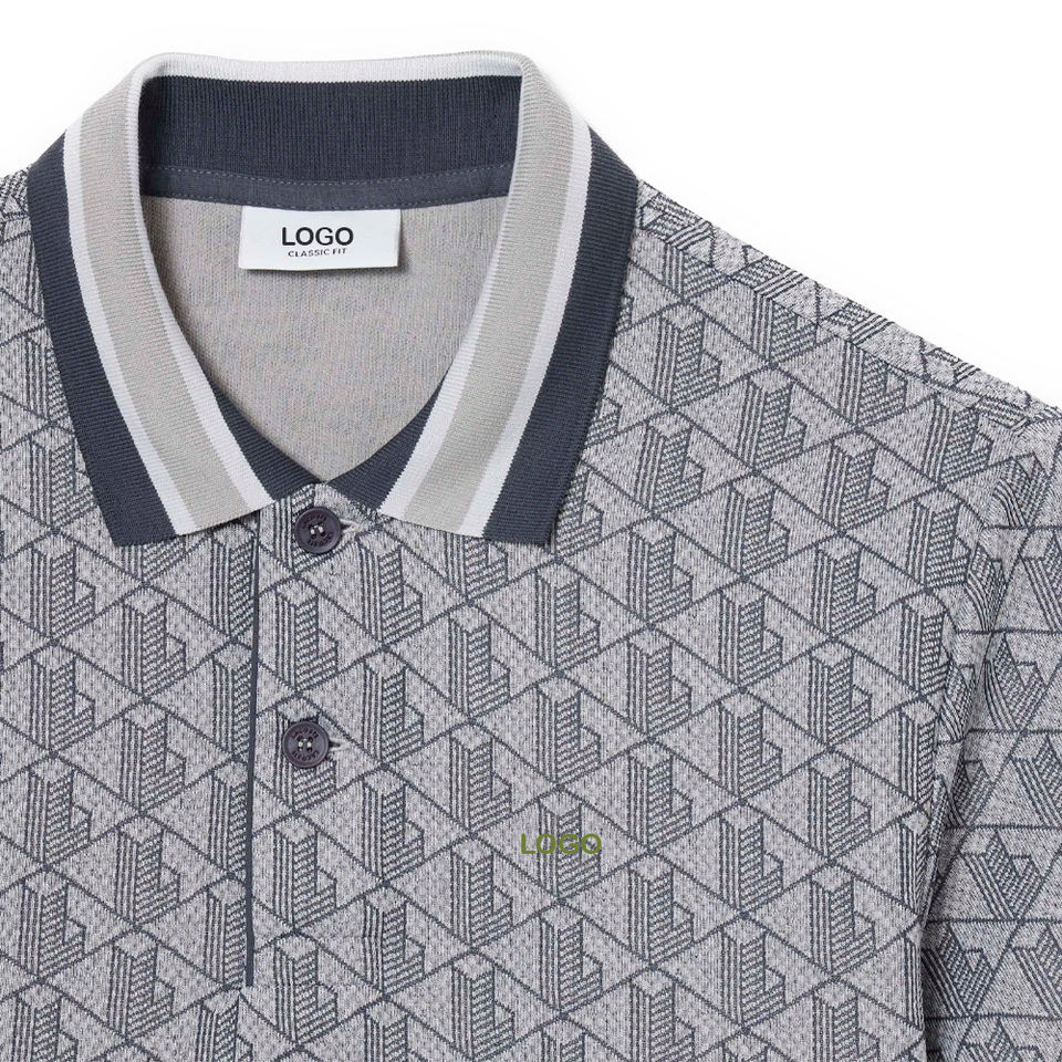 เสื้อโปโลพรีเมียมสำหรับผู้ชาย OEM ทรงคลาสสิก ผ้าถักลายแจ็คการ์ด ระบายอากาศได้ดี ทนทาน คอเสื้อตัดสี ผ้าคอตตอนผสม แขนสั้น ขอบเสื้อแบบริบ