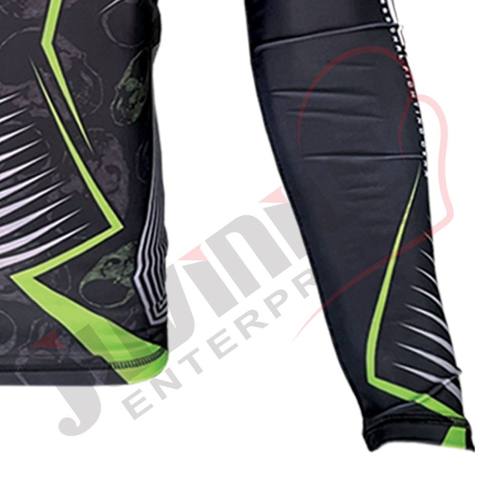 เสื้อรัดกล้ามเนื้อพิมพ์ลายดิจิตอลสำหรับผู้ชาย ออกแบบเองได้ตามสั่ง ผลิตจำนวนมาก ผ้าโพลีเอสเตอร์ผสมสแปนเด็กซ์ ระบายอากาศได้ดี เหมาะสำหรับกีฬาบราซิลเลียนยิวยิตสูและ MMA