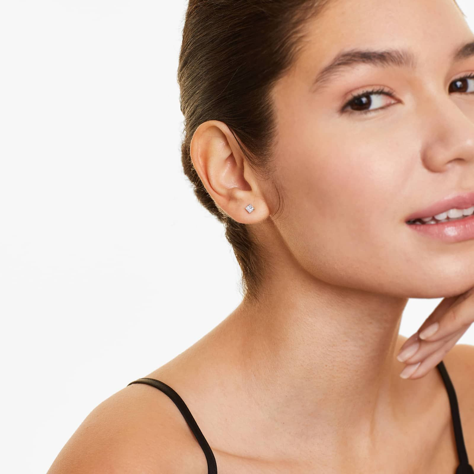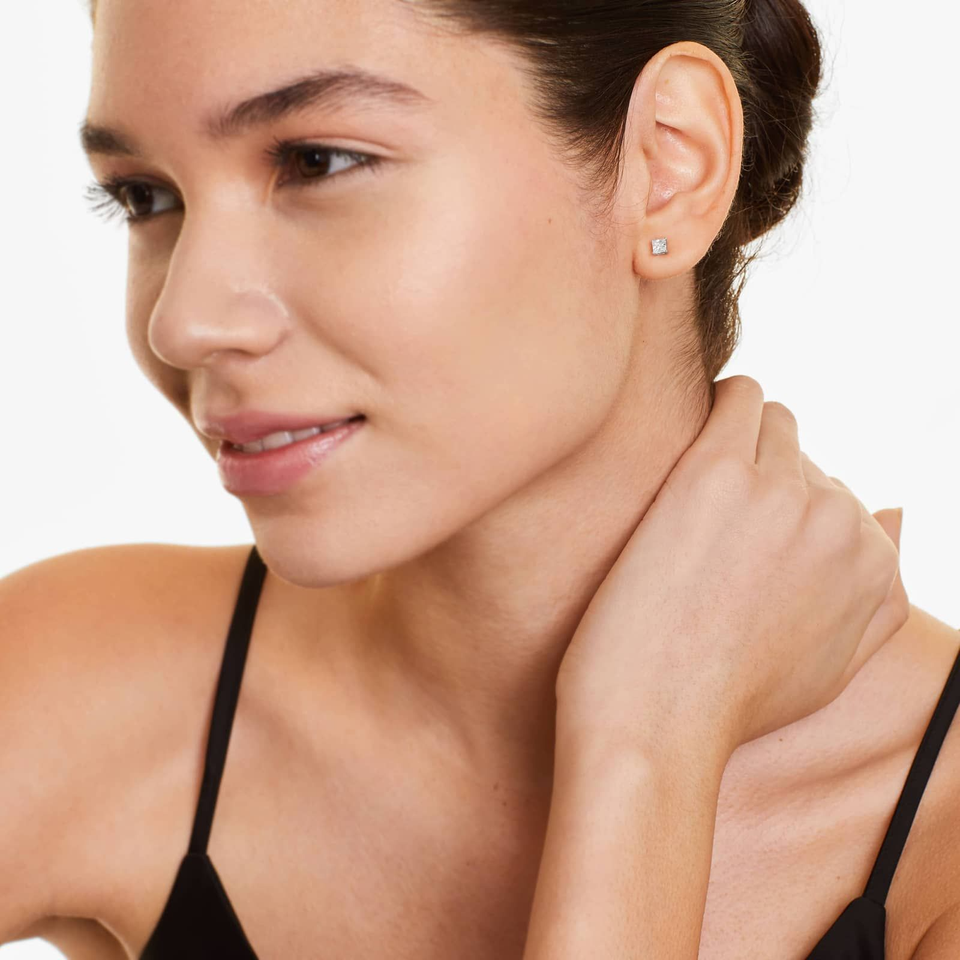 ต่างหูเพชรโมอิสซาไนต์ทรงพรินเซสคัท พรีเมียม เงินแท้ 925 ดีไซน์เรียบหรู ประกายระยิบระยับ เหมาะสำหรับใส่ทุกวัน