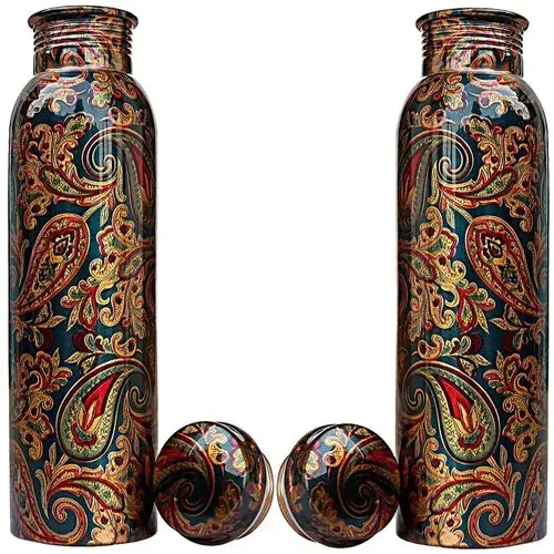 ขวดน้ำทองแดงพิมพ์ลายพรีเมี่ยมขวดน้ำดีไซน์แฮนด์เมดภาชนะใส่เครื่องดื่มคุณภาพสูงสำหรับใช้ในสำนักงานยิมที่บ้านและขายต่อ