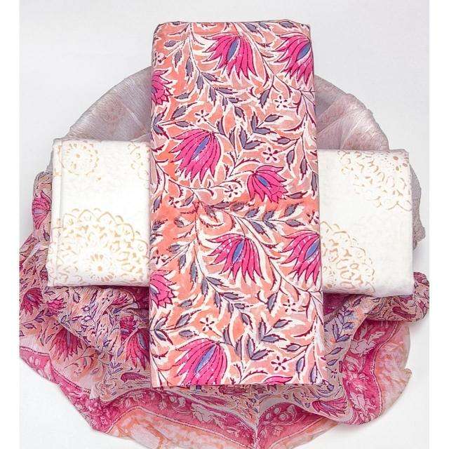 ผ้าฝ้ายพิมพ์ลายพรีเมียม เนื้อนุ่ม ระบายอากาศได้ดี น้ำหนักเบา เหมาะสำหรับตัดเย็บชุดคุรติ ชุดเดรส งานฝีมือ และเสื้อผ้าฤดูร้อน