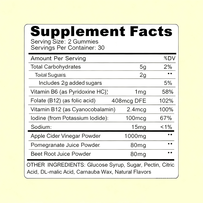 กัมมี่ป้ายสินค้าพรีเมียมสูตรทางวิทยาศาสตร์พร้อม ACV และ B6สำหรับการสั่งซื้อจำนวนมากที่ใช้พลังงานตลอดทั้งวัน