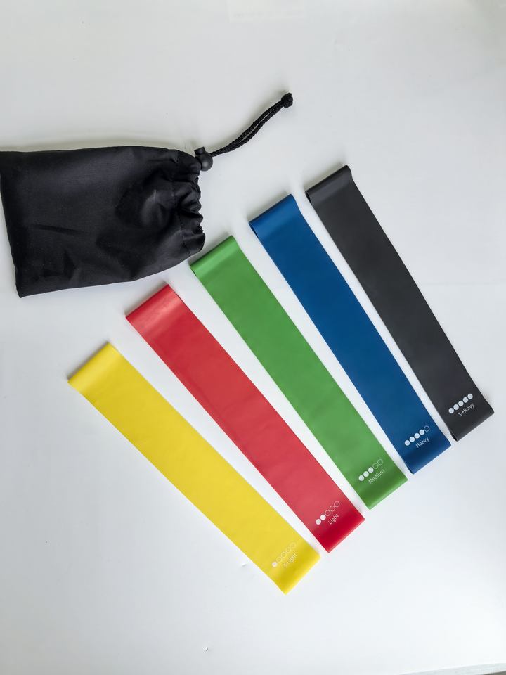 ชุดยางยืดออกกำลังกายแบบวง 5 เส้น ขนาด 12 นิ้ว รุ่นพรีเมียมโปร สำหรับกายภาพบำบัด พร้อมกระเป๋า