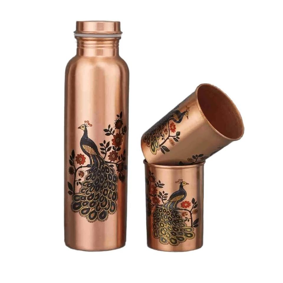 Premium Pure Copper Bottle with Matching Glasses for Daily Hydration Traditional Wellness and Lifestyle Benefits