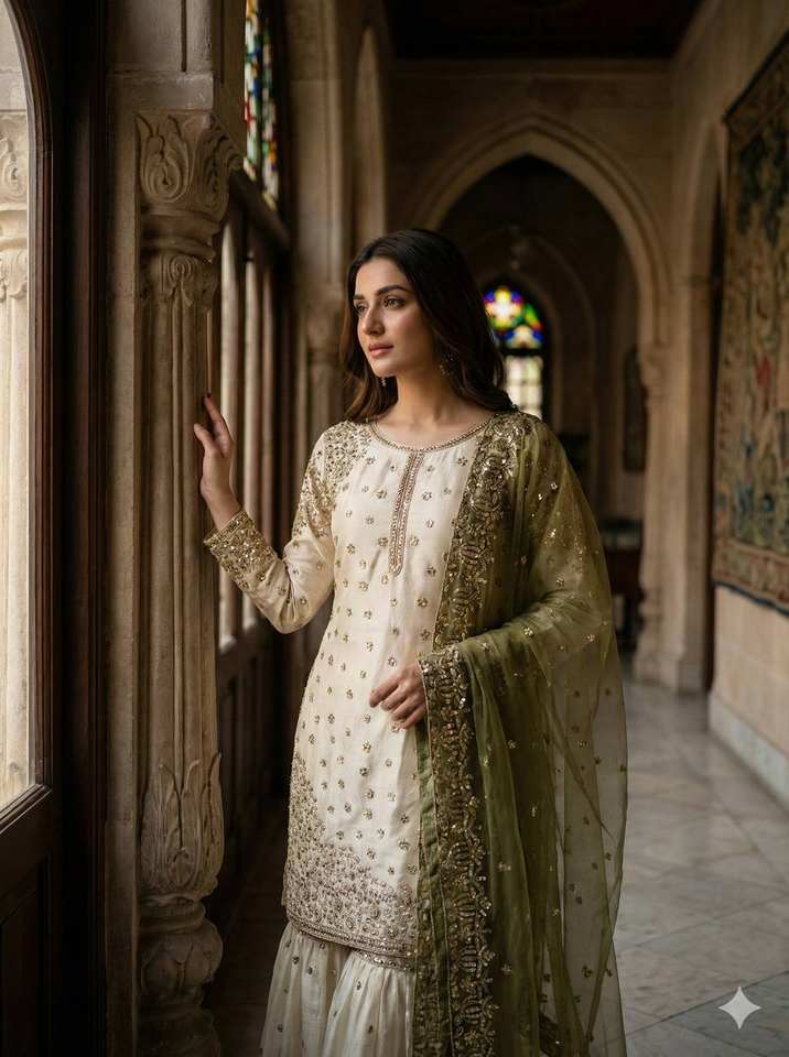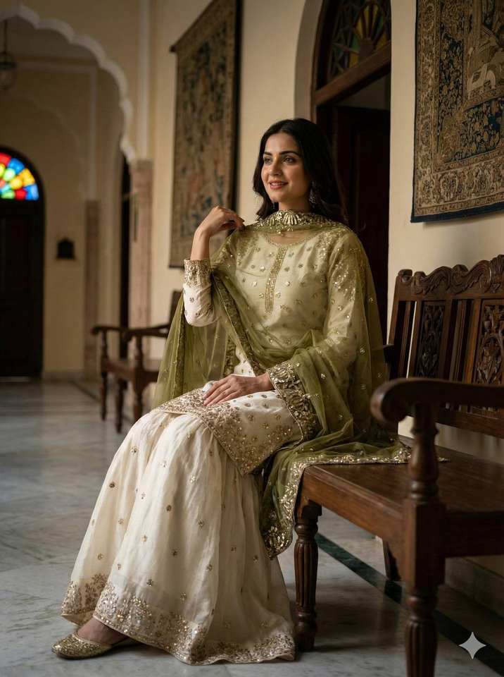 ชุดการาร่าผ้าไหมเฟนดี้แท้พรีเมียมปักลายหนัก พร้อมผ้าคลุมไหล่เนื้อนุ่ม – ชุดพื้นเมืองสำหรับงานเทศกาลและงานแต่งงานที่สง่างาม