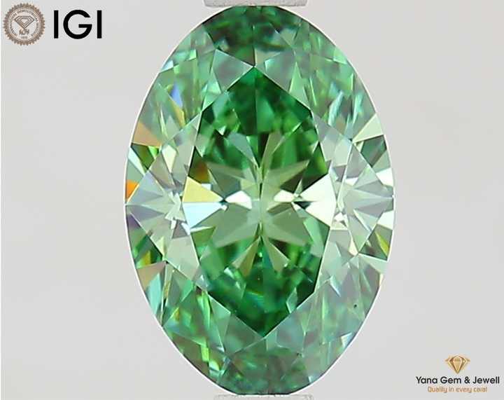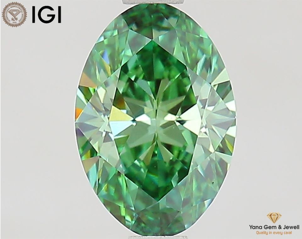 เพชรคุณภาพพรีเมียม 1.50 กะรัต สีเขียวแฟนซีสดใส ความสะอาดระดับ VVS2 ทรงรี ผลิตด้วยวิธี CVD ผ่านการรับรองจาก IGI สำหรับเครื่องประดับ