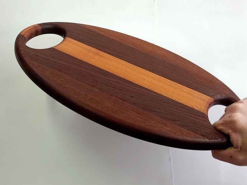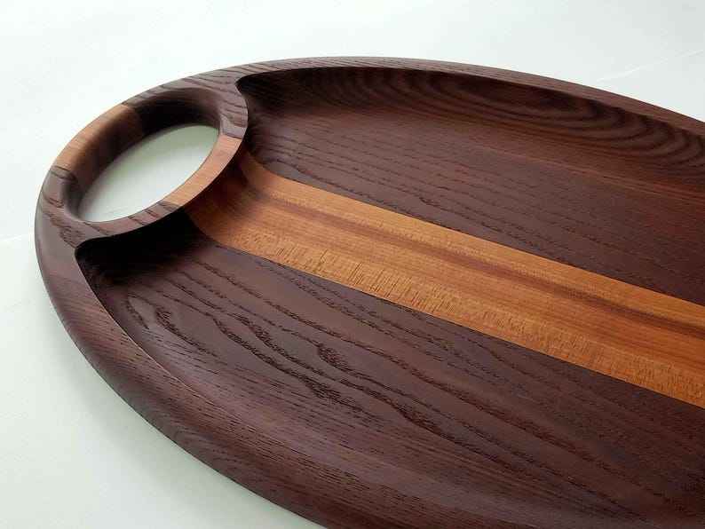ถาดไม้อะคาเซีย100% ทรงรีสำหรับเสิร์ฟอาหารและเครื่องดื่ม