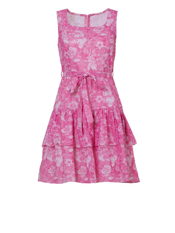 เดรสสั้นสีชมพูลายดอกไม้ ผ้าฝ้าย 100% คุณภาพพรีเมียม เป็นมิตรต่อสิ่งแวดล้อม แขนกุด เหมาะสำหรับปิกนิก กิจกรรมกลางแจ้ง แฟชั่นสไตล์สตรีท
