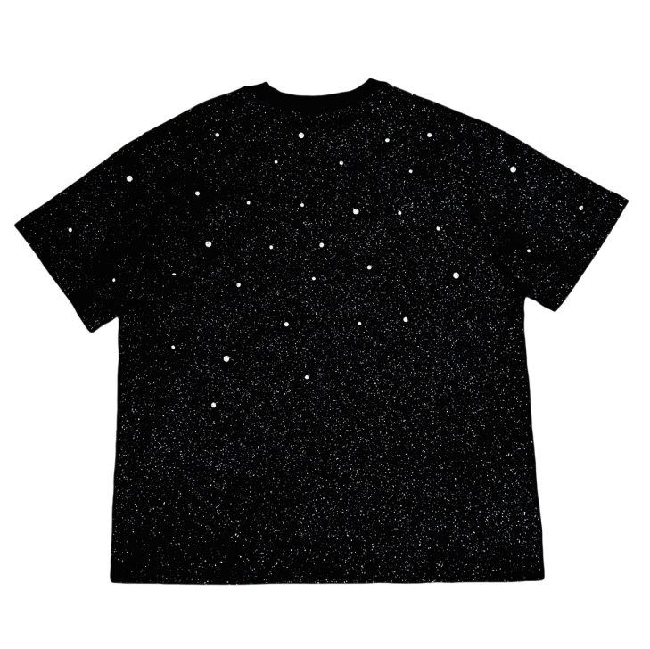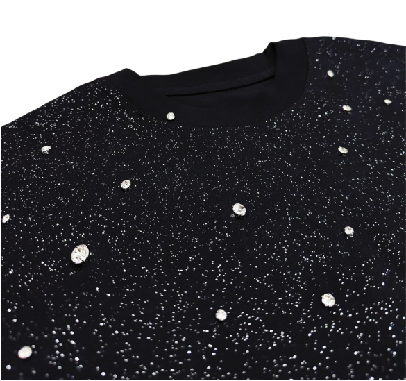 เสื้อยืดผู้ชายคุณภาพพรีเมียม ผ้าฝ้าย 100% ประดับเพชรเทียม ทรงหลวม สีดำ มีหลายขนาดให้เลือก