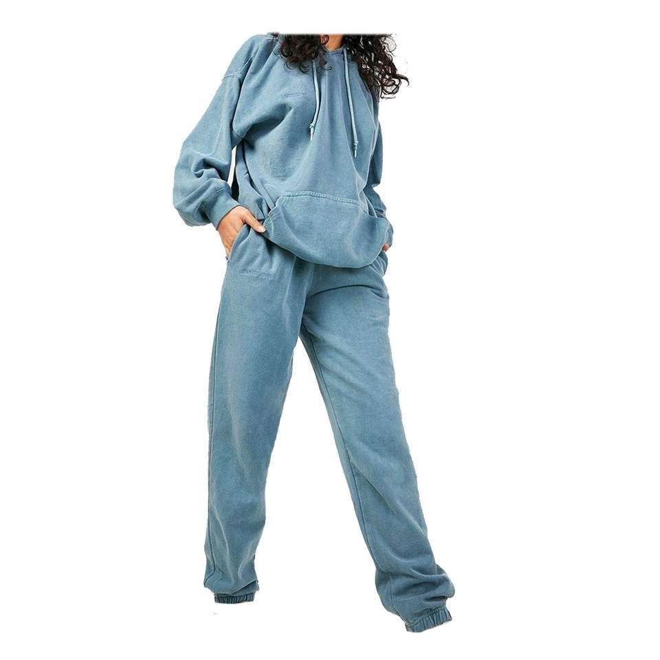 ชุดวอร์มผู้หญิงผ้าฝ้าย100% โอเวอร์ไซส์ชุดวิ่งจ๊อกกิ้งปักลาย
