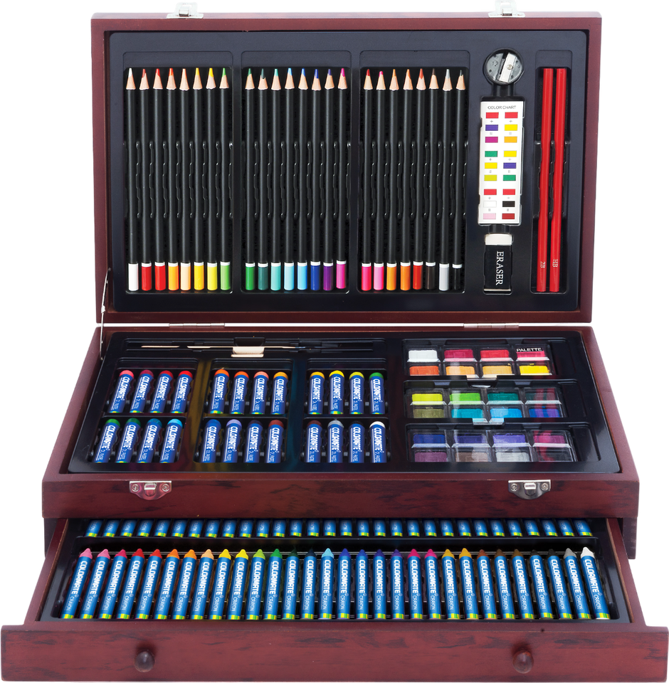 ชุดศิลปะงานไม้สุดสร้างสรรค์142ชิ้นคุณภาพระดับพรีเมียมประกอบด้วยภาพวาดผ้าใบและดินสอสีสำหรับการวาดภาพและการเขียนของศิลปิน