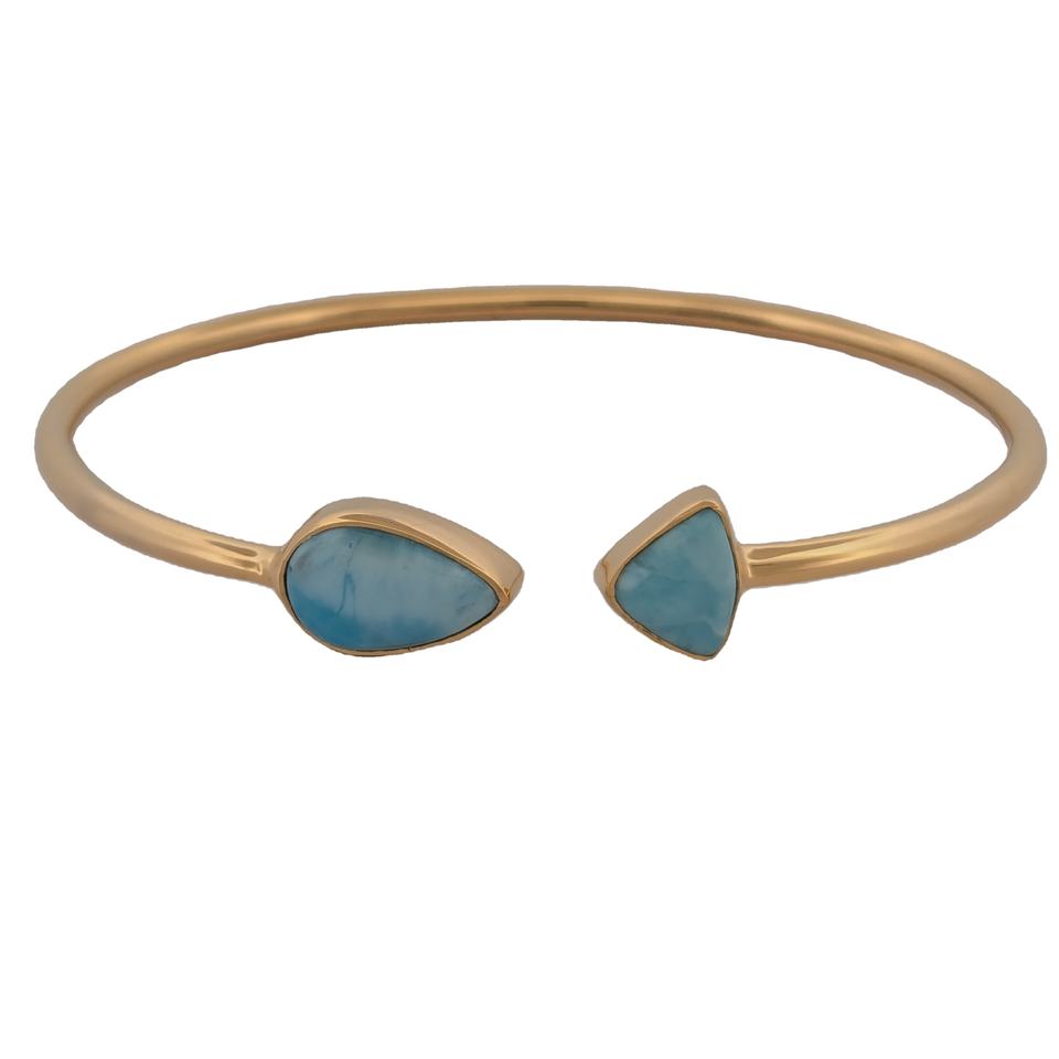 สร้อยข้อมือทองคำแท้ 18K ชุบ E-Coat คุณภาพพรีเมียม ประดับด้วยพลอยลาร์ิมาทรงลูกแพร์แบบกึ่งทริลเลียน ดีไซน์ทันสมัย ทำด้วยมือ