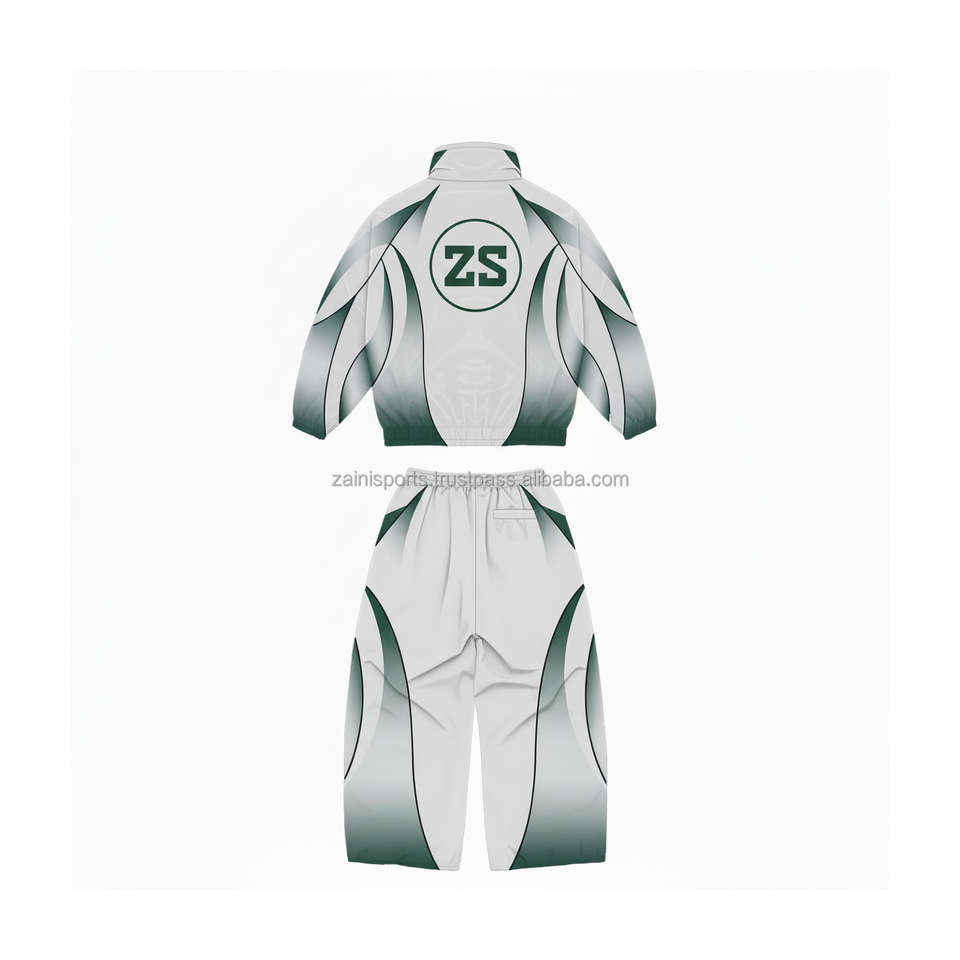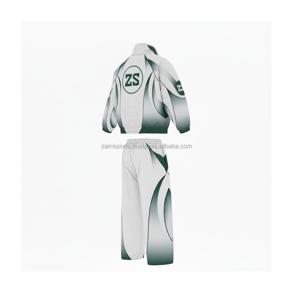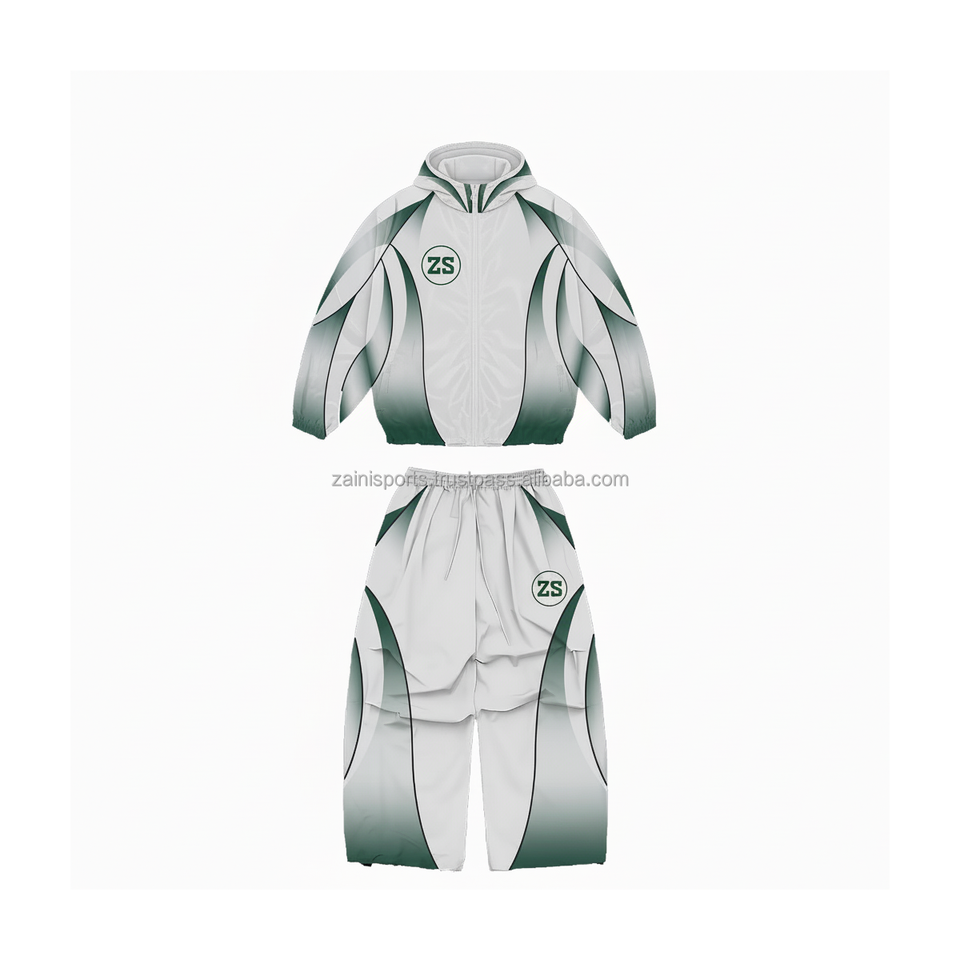 Premium Quality 220 GSM Microfiber Polyester Windbreaker Set White Green Design Custom Logo Heat Transfer Printing plus size