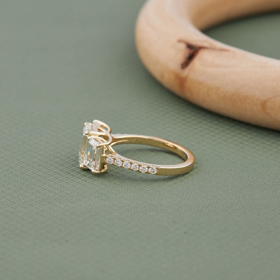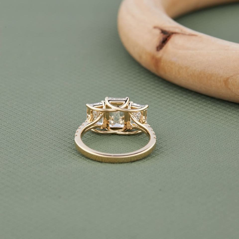 แหวนเพชรสีทอง3ชิ้นคุณภาพพรีเมี่ยมพร้อมศูนย์กลางแวววาวสำหรับงานแต่งงานและงานเฉลิมฉลอง