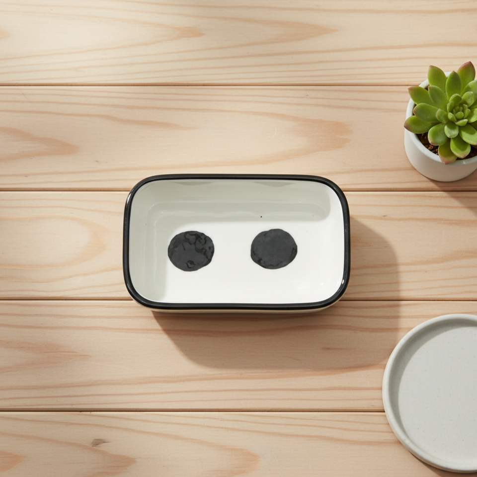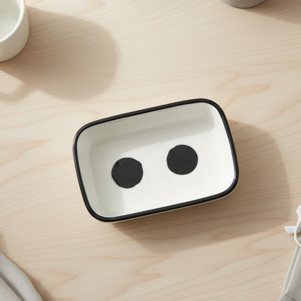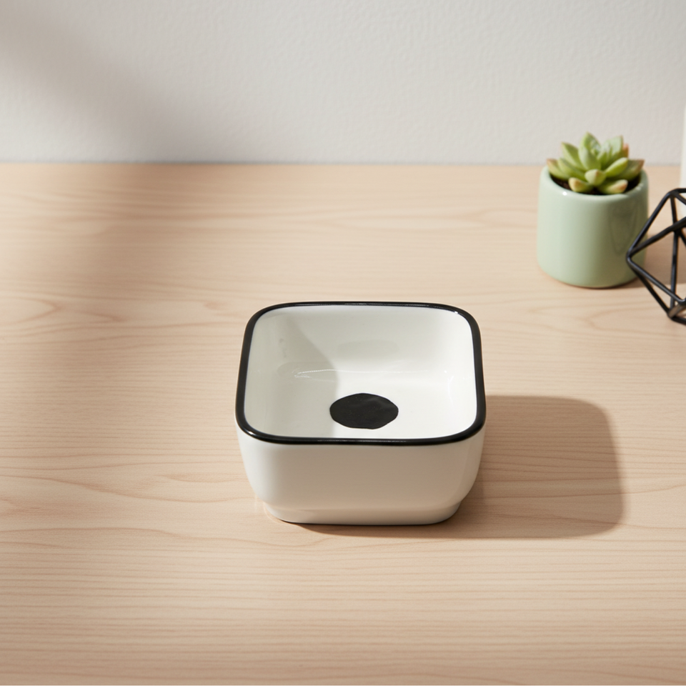 จานซอสทรงสี่เหลี่ยมพรีเมียมคุณภาพสูง 3460903-9X6.5 ทำจากเซรามิก พร้อมลวดลายสีดำ