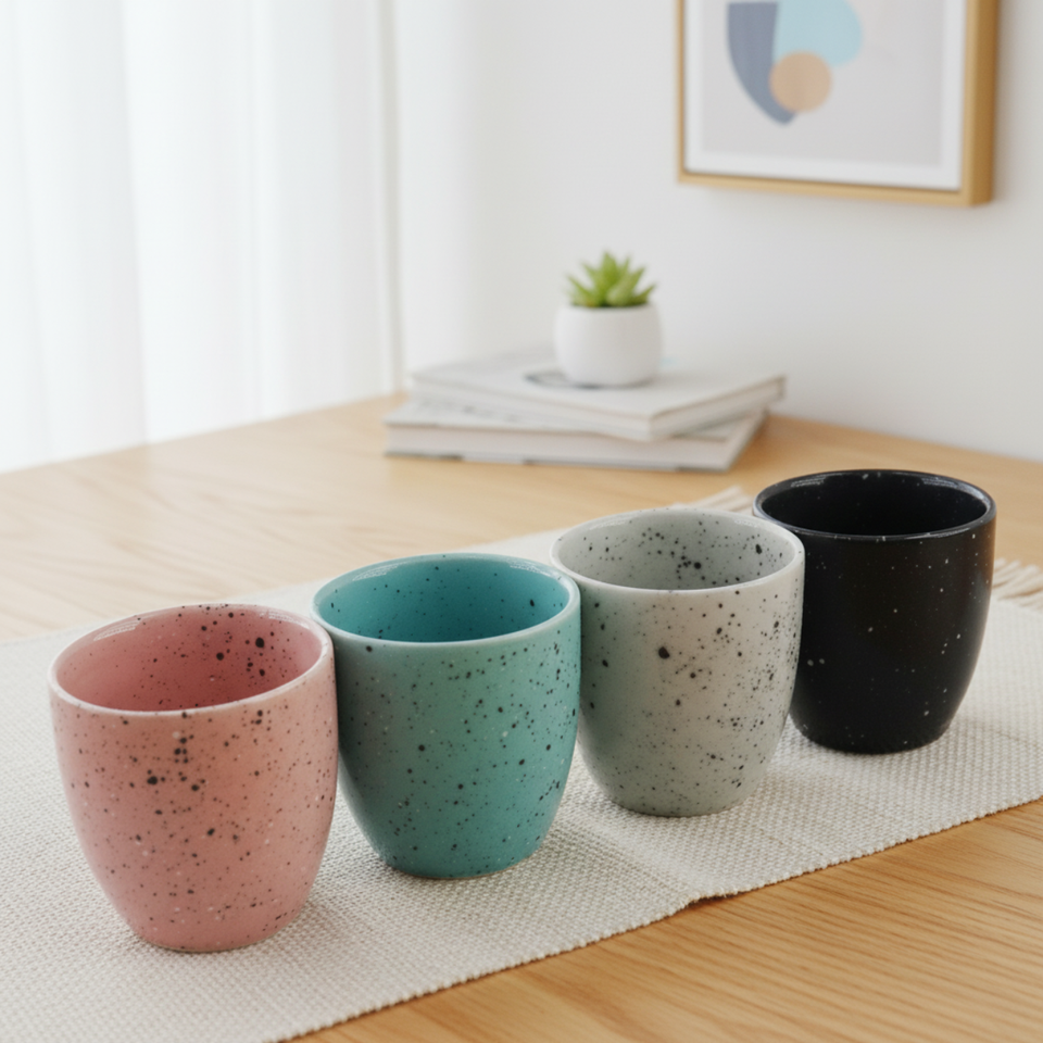 แก้วชาพอร์ซเลนคุณภาพพรีเมียม 3461009-0.15 ดีไซน์นอร์ดิก ทนทาน 150 มล. สีดำพ่นลายจุดขาว