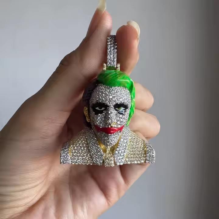 Premium Quality 3A Large Joker Cartoon Pendant CZ Hop Hip Iced Simulated Diamond Customized Gift Available at Affordable Price