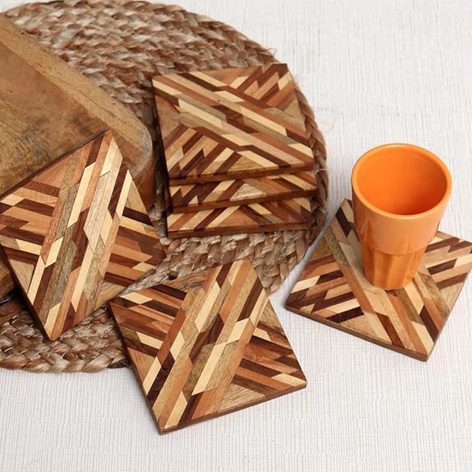 แผ่นรองแก้วไม้ทรงสี่เหลี่ยมหนา5มม. แผ่นรองแก้วกาแฟแผ่นรองแก้วสำหรับตกแต่งโต๊ะในบ้าน