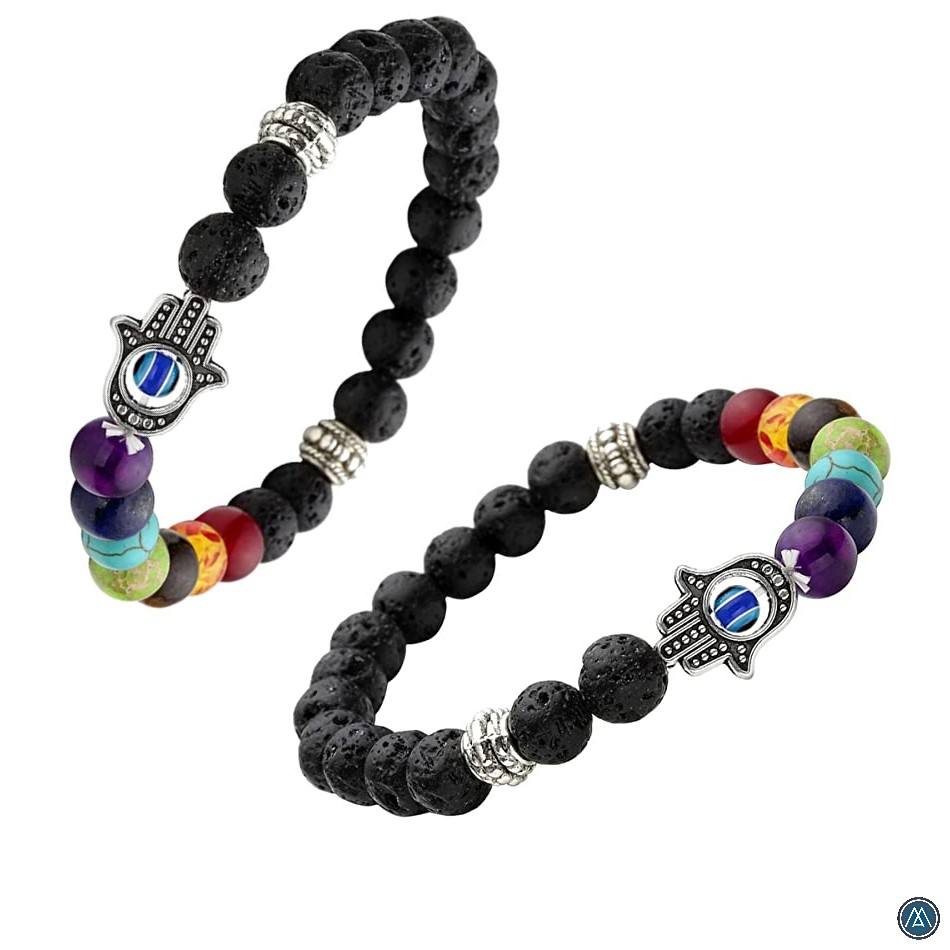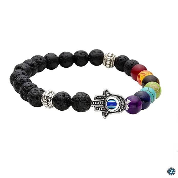 กำไลข้อมือหินลาวาธรรมชาติ7ชิ้นสำหรับผู้ชายและผู้หญิง