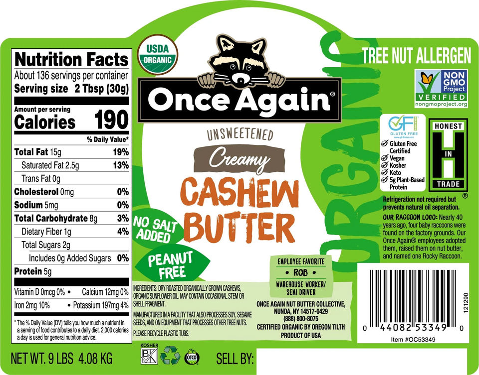 โคเชอร์เนยเม็ดมะม่วงหิมพานต์ปราศจากกลูเตนไม่หวาน9lb ออร์แกนิกไม่ใส่กล่องจำนวนมาก
