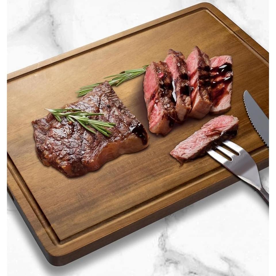 เขียงไม้กระถินณรงค์คุณภาพพรีเมียม หนา ทนทาน ใช้ได้สองด้าน พร้อมร่องระบายน้ำผลไม้ สำหรับใช้ในครัว ร้านอาหาร รับผลิตแบบ OEM