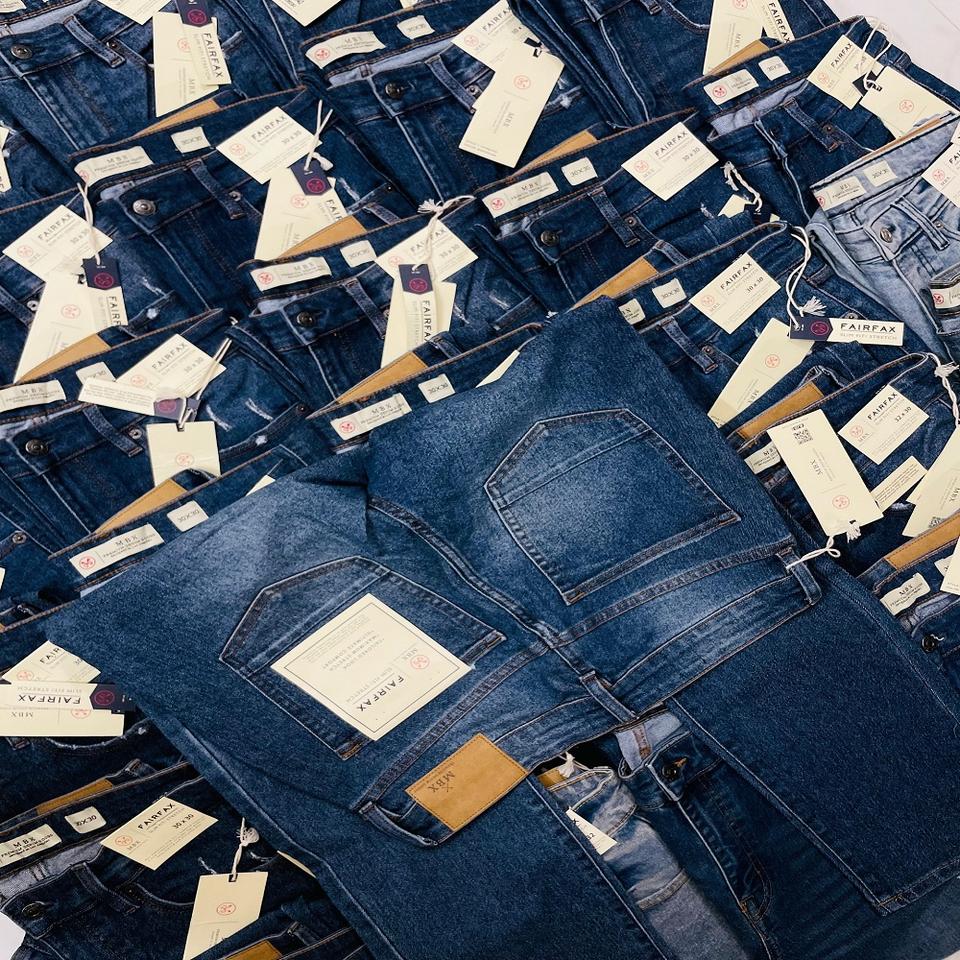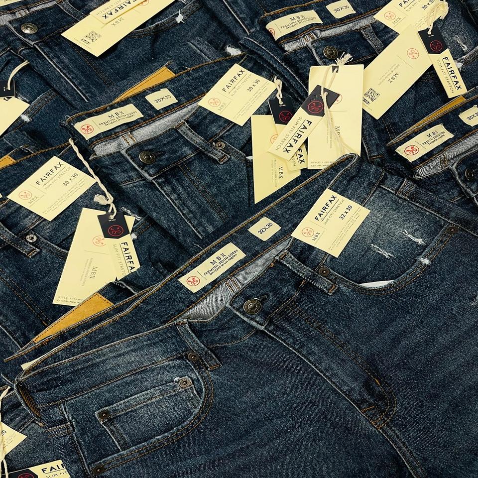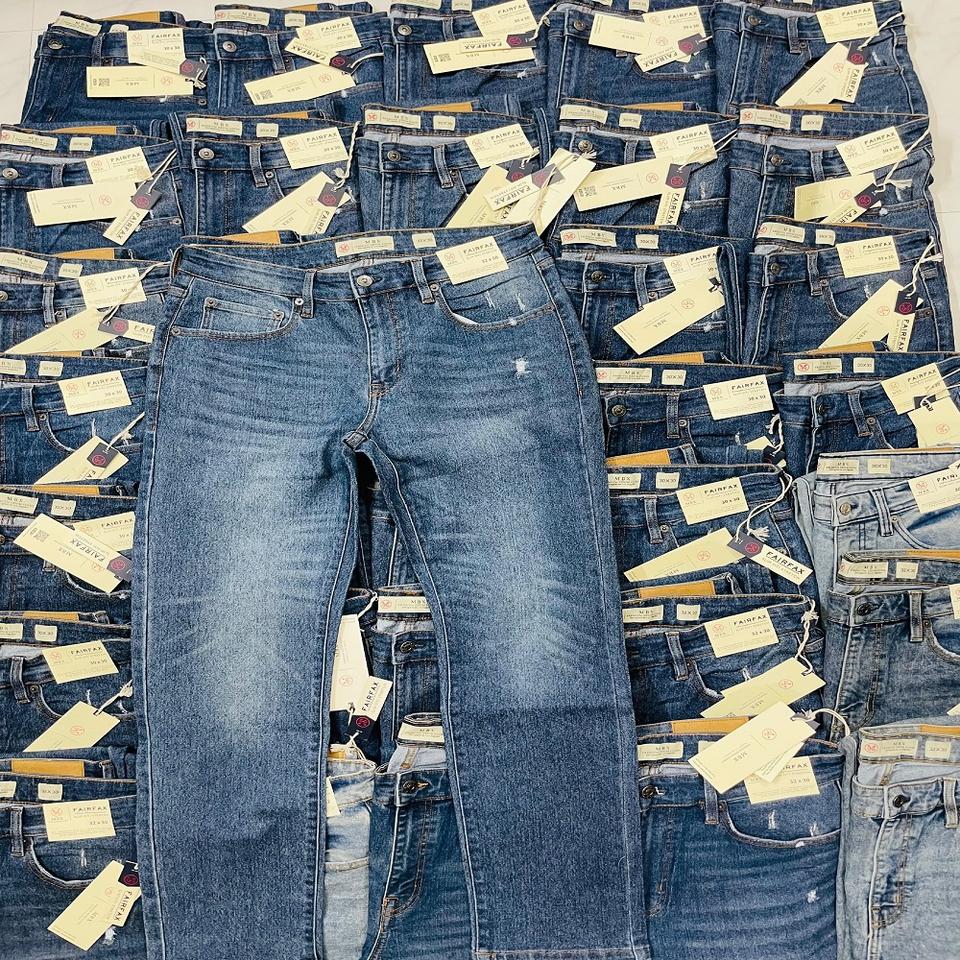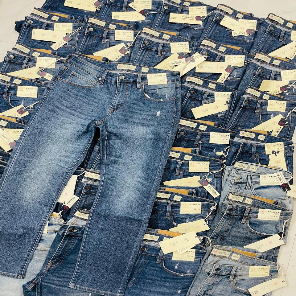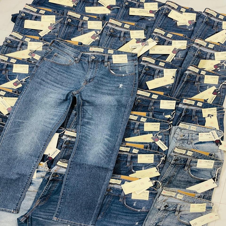 กางเกงยีนส์เดนิมฟอกสีคุณภาพพรีเมียมสำหรับผู้ชาย กางเกงทรงตรงแบบซ้อนสั่งทำพิเศษ สไตล์ฮิปฮอป เสื้อผ้าสต็อกล็อตส่วนเกิน