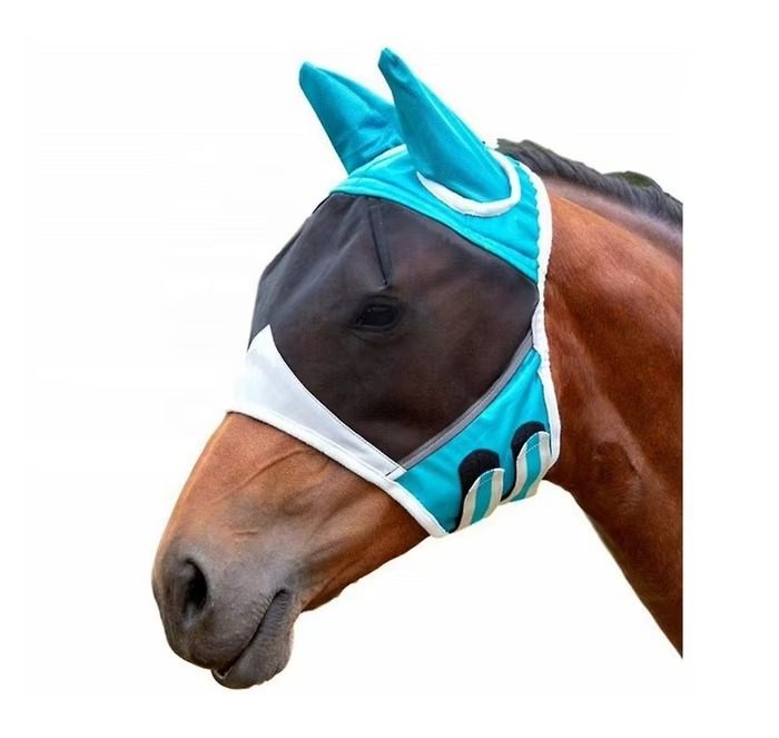 หน้ากากม้าบินปรับได้คุณภาพระดับพรีเมี่ยมแบบตาข่ายระบายอากาศได้ดีป้องกันหูทนทานปรับแต่งได้อุปกรณ์ดูแลม้าได้