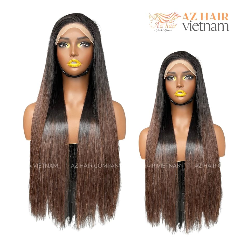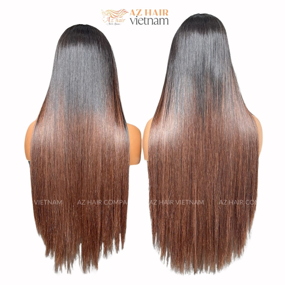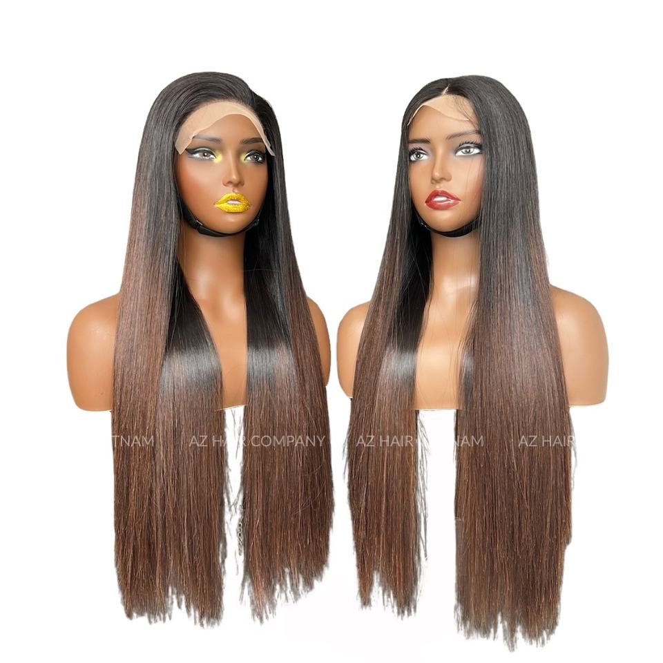 วิกผมคุณภาพพรีเมียม ผลิตสำเร็จรูป ถอนขนแล้ว ไม่ต้องใช้กาว ผมแท้ พร้อมยางยืด ปลายสีน้ำตาล 300 กรัม พร้อมเชือกผูกปิดผม