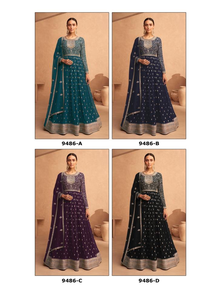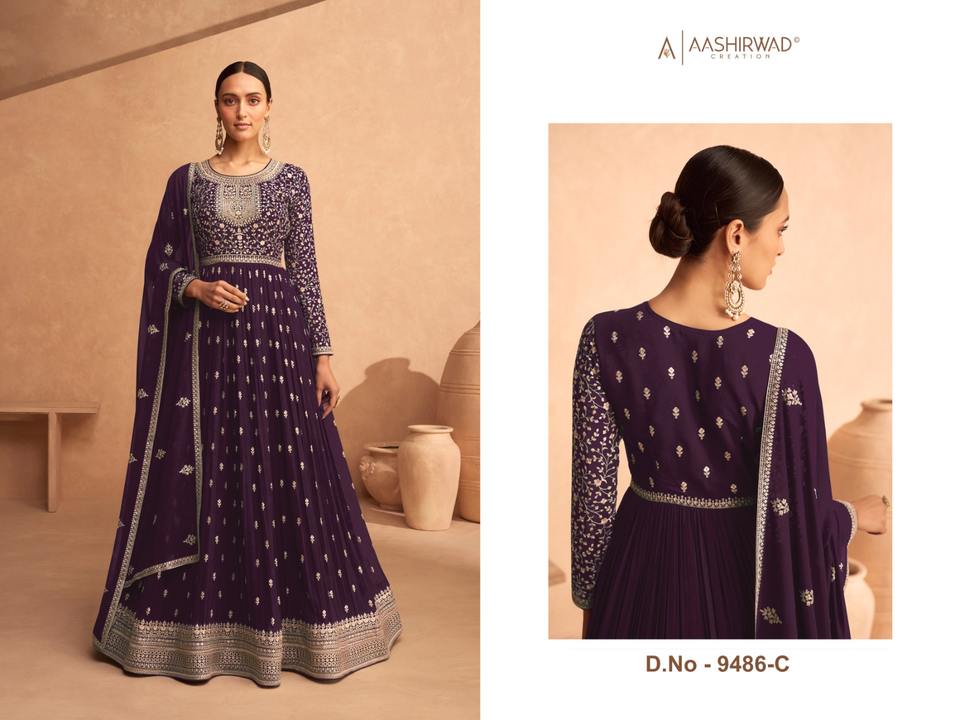 ชุด anarkali salwar kameez คุณภาพสูงผลิตในผ้าจอร์เจียสุนัขจิ้งจอกหนักพร้อมงานเย็บปักถักร้อยตามลำดับ