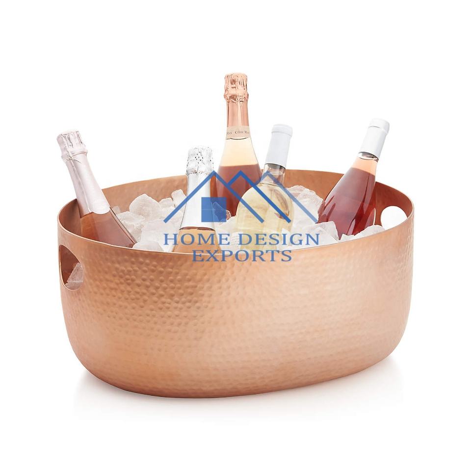 ถังน้ำแข็งทองแดงโบราณพร้อมด้ามจับพร้อมโลโก้ปรับแต่งได้อ่างไวน์และอ่างแช่เครื่องดื่ม