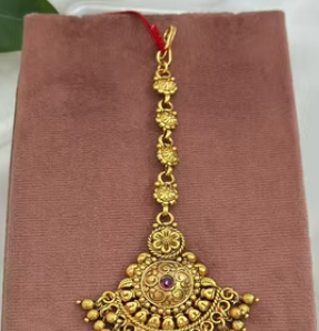 คอลเลกชันเครื่องแต่งกายงานแต่งงานแบบดั้งเดิมสำหรับผู้หญิง916สีทองพร้อมเครื่องประดับผม Tikka โบราณคุณภาพพรีเมี่ยม