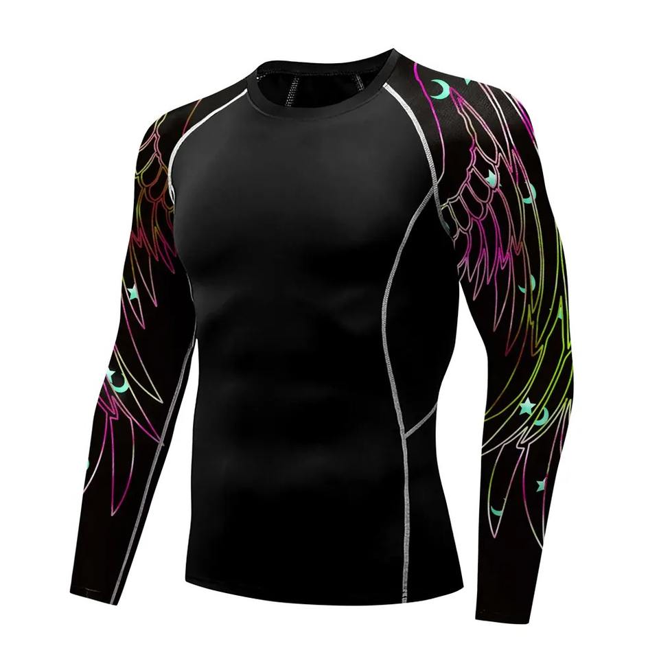 เสื้อรัดกล้ามเนื้อคุณภาพพรีเมียมสำหรับบราซิลเลียนยิวยิตสูและศิลปะการต่อสู้แบบผสมผสาน ระบายอากาศได้ดี แห้งเร็ว แขนยาว สำหรับผู้ชาย ผลิตจากโพลีเอสเตอร์ผสมสแปนเด็กซ์