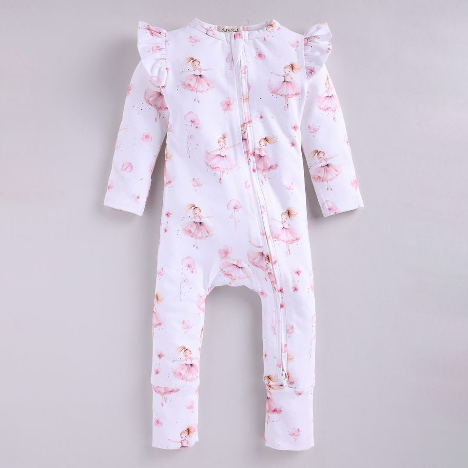 รอมเปอร์มีซิปพิมพ์ลายนางระบำสำหรับเสื้อผ้าไม้ไผ่อีลาสเทนสำหรับเด็กทารก