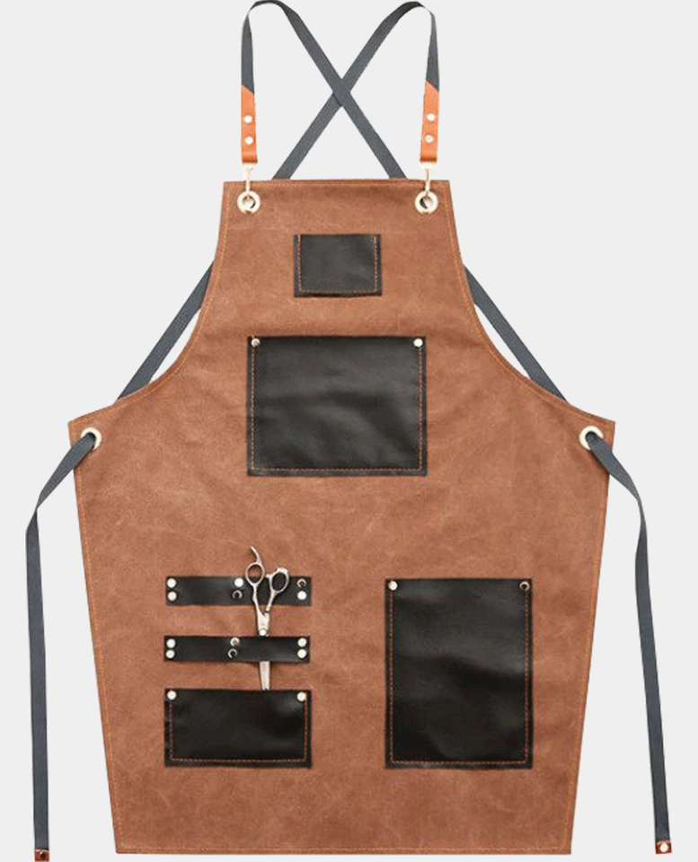 ผ้ากันเปื้อนช่างตัดผมคุณภาพพรีเมียม | ที่ใส่กรรไกรตัดผม มีดโกน หวี ผ้ากันเปื้อน รับทำโลโก้ตามสั่ง