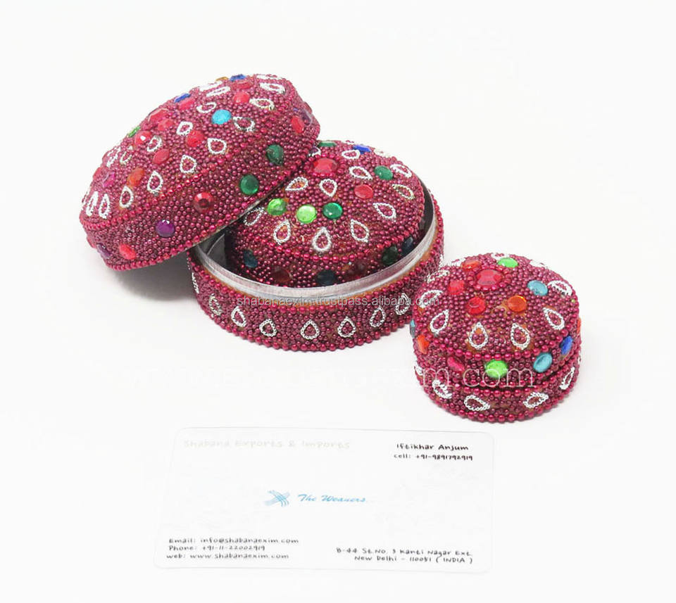 กล่องใส่เครื่องประดับคุณภาพพรีเมียม ชุด 3 ชิ้น ของที่ระลึกอินเดีย ขายส่ง กล่องโลหะ