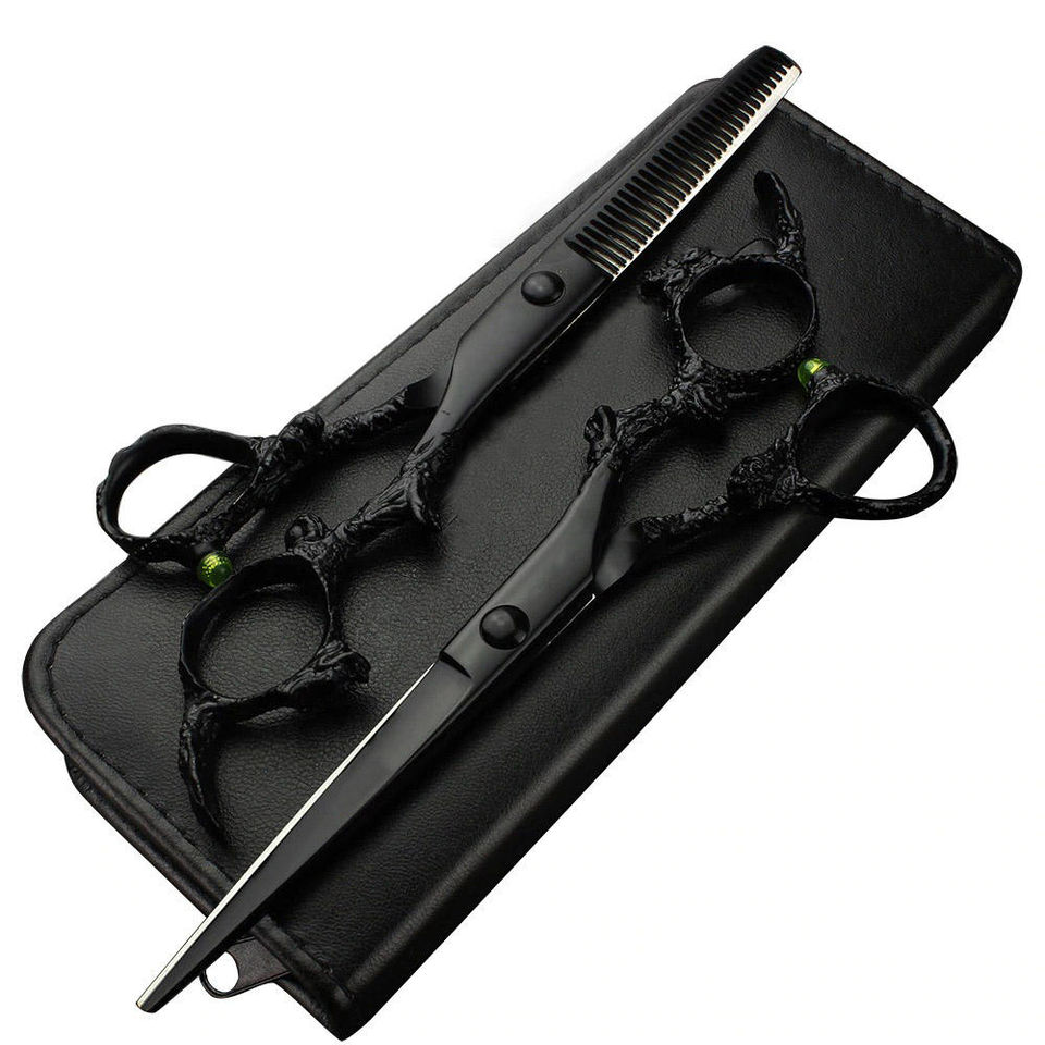 ชุดใบมีดสแตนเลสปลายแหลมด้ามจับมังกรดำกรรไกรตัดผมและผอมบาง VG10พรีเมี่ยม