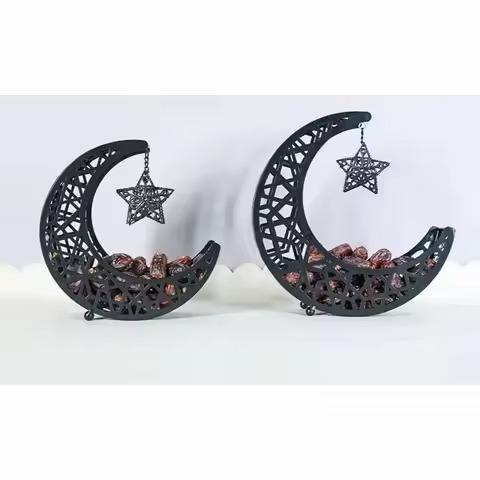 ชามใส่ผลไม้แห้งรูปพระจันทร์สีดำคุณภาพพรีเมียม ชามตกแต่งหรูหราสำหรับใส่พุทราและผลไม้อบแห้ง เหมาะสำหรับใช้ในงานเลี้ยงรอมฎอน อิฟตาร์ และบนโต๊ะอาหาร