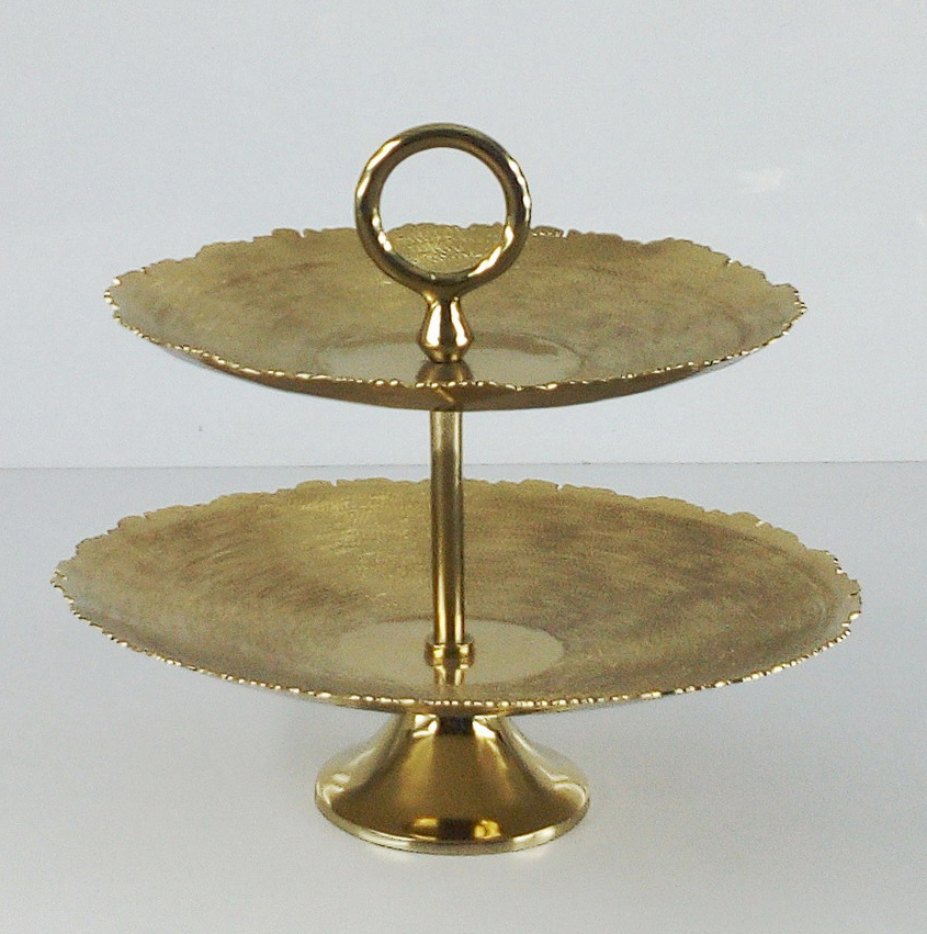 ชั้นวางเค้กทองเหลือง2ชั้นสำหรับตกแต่งบ้านและห้องครัว