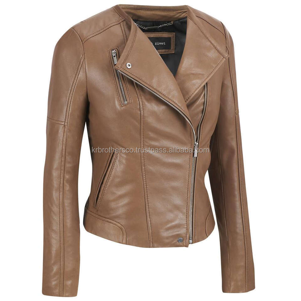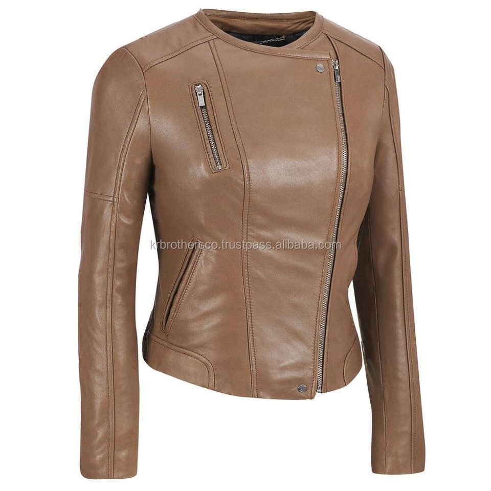 แจ็คเก็ตหนังแกะสีน้ำตาลคุณภาพพรีเมียม เป็นมิตรกับสิ่งแวดล้อม สำหรับผู้หญิง ไม่มีปก ซับในผ้าไหม สำหรับฤดูหนาว ขายส่ง
