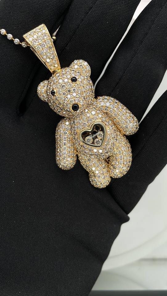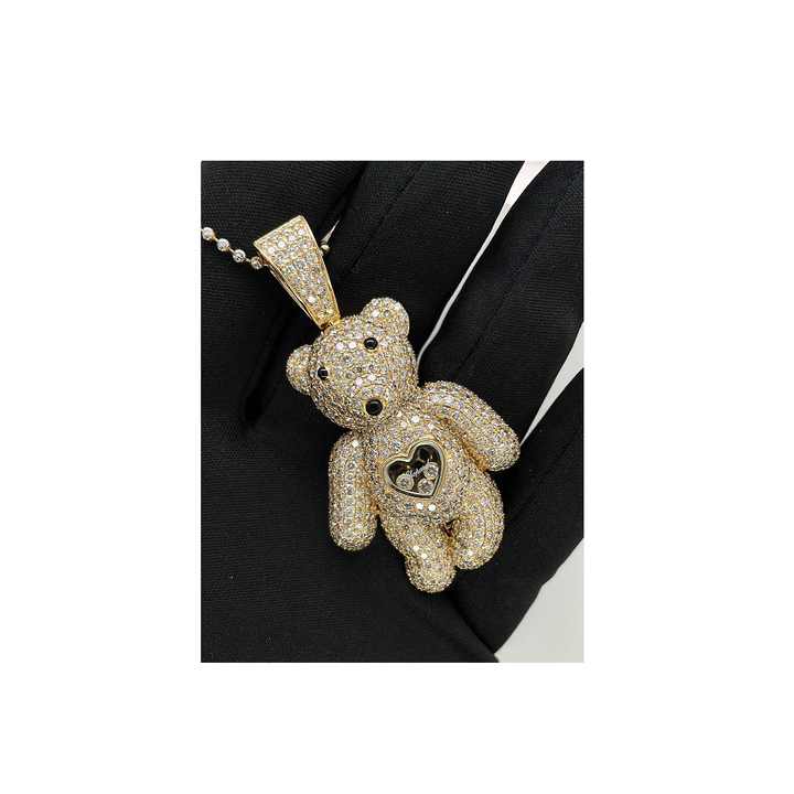 จี้ตุ๊กตาหมีสไตล์การ์ตูนทำจากทองคำ14 KT สีเหลืองทองประดับเพชรธรรมชาติ VS Si สำหรับสาวสวย