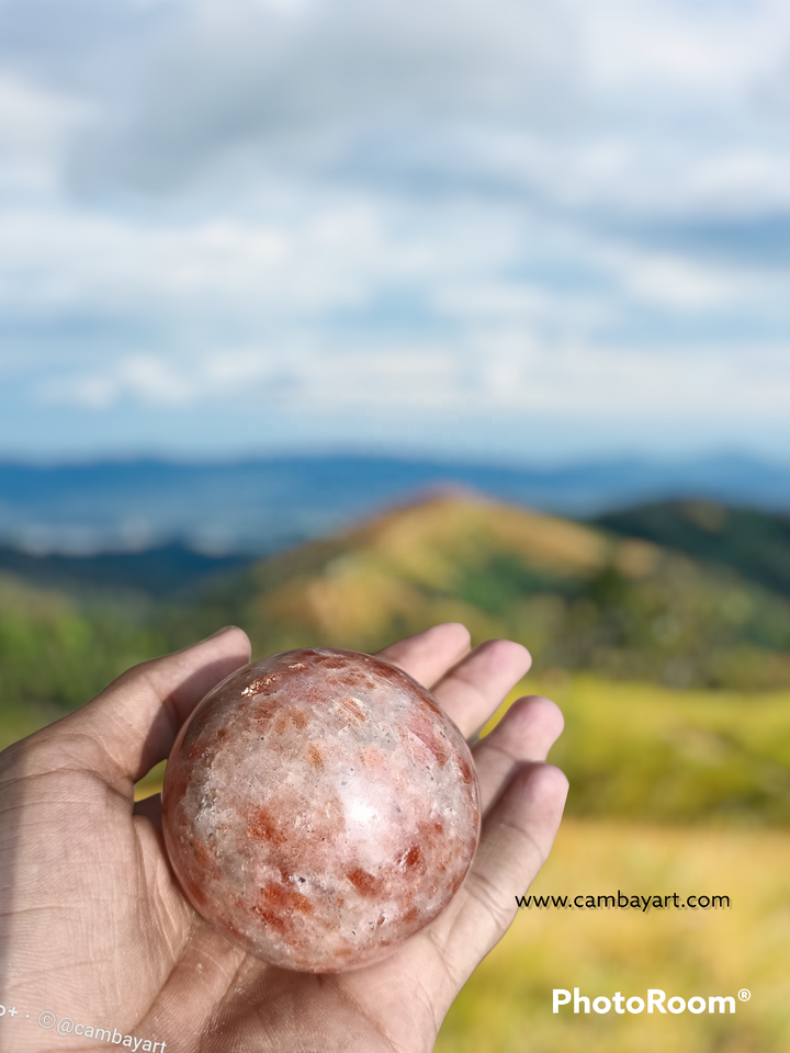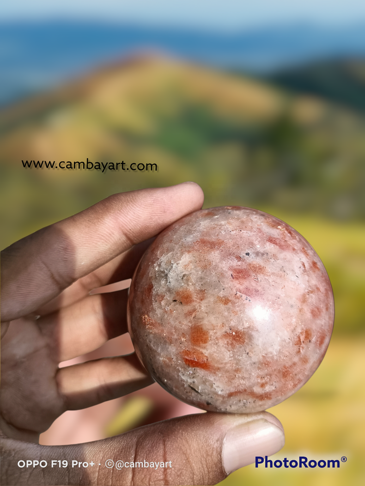 Premium Quality Carved Sunstone Sphere from India Natural Healing Feng Shui Style Crystal Material Available