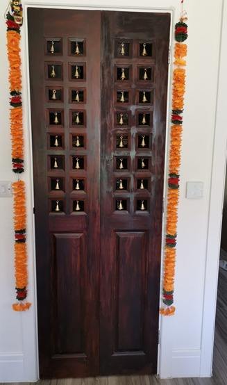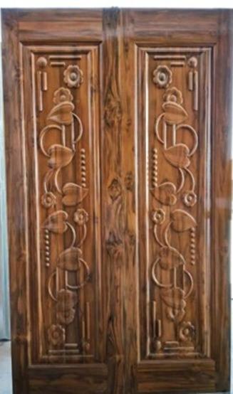ประตูไม้สักแกะสลักคุณภาพพรีเมียมแบบสองบาน สำหรับทางเข้าวัด สถานที่ศักดิ์สิทธิ์ หรือบ้านพักตากอากาศและรีสอร์ท มีจำหน่ายในราคาส่งออก