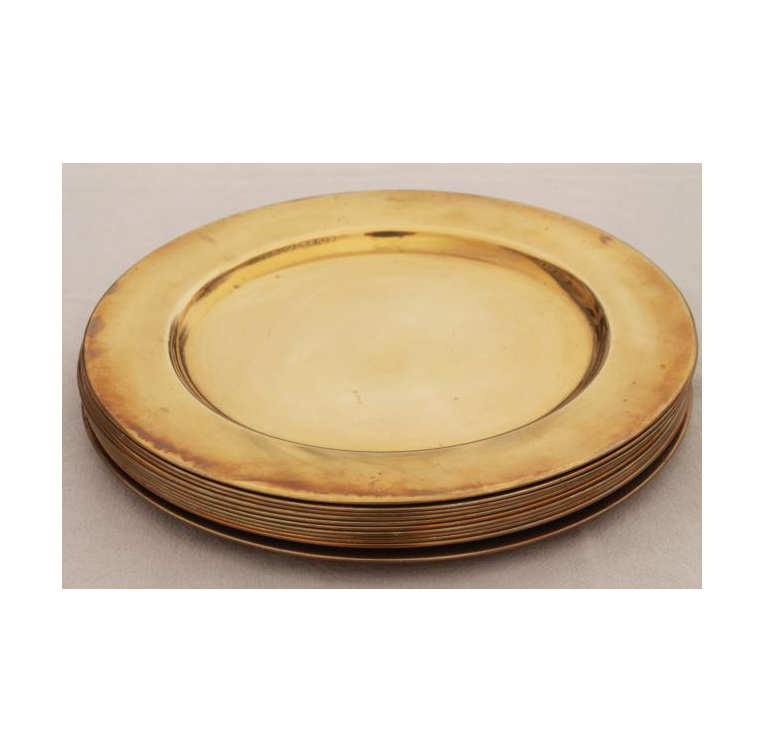 จานชาร์จคุณภาพพรีเมี่ยมพร้อมอุปกรณ์รับประทานอาหารทองเหลืองแข็งหลายชิ้นดีไซน์ทันสมัยขายดี