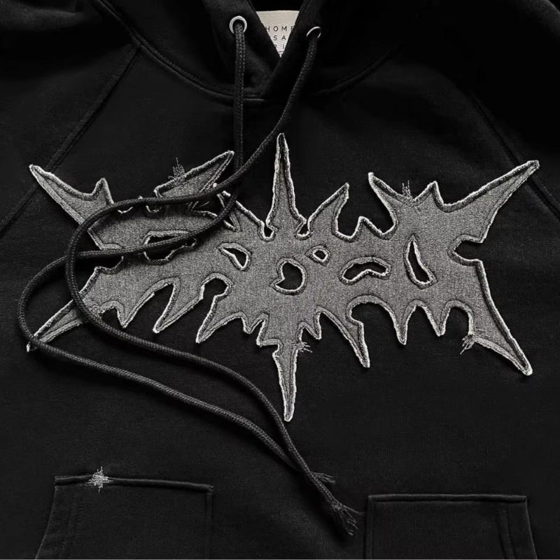 เสื้อผ้าเด็กคุณภาพพรีเมียม สไตล์สตรีทแวร์ทรงหลวม ผ้าฟลีซคอตตอนหนา 540 GSM สองสี แต่งลายปักแบบดิสเทรส
