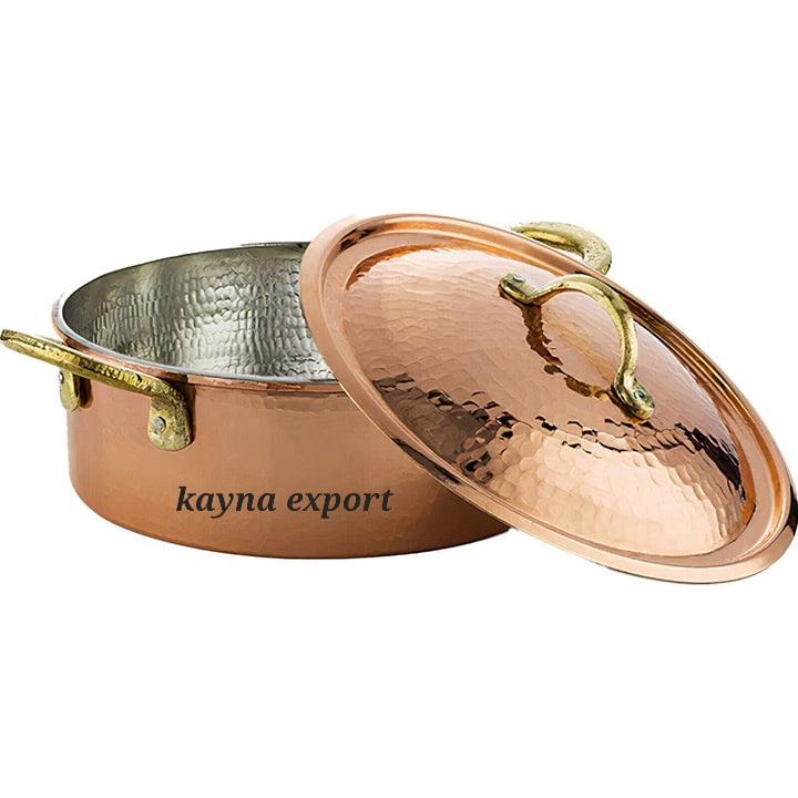 ชุดเครื่องครัวทองแดงคุณภาพพรีเมียมแบบคลาสสิก พร้อมฝาปิดแก้ว/ซิลิโคน ด้ามจับทองเหลืองเป็นมิตรกับสิ่งแวดล้อม ใช้กับเตาอบและเครื่องล้างจานได้