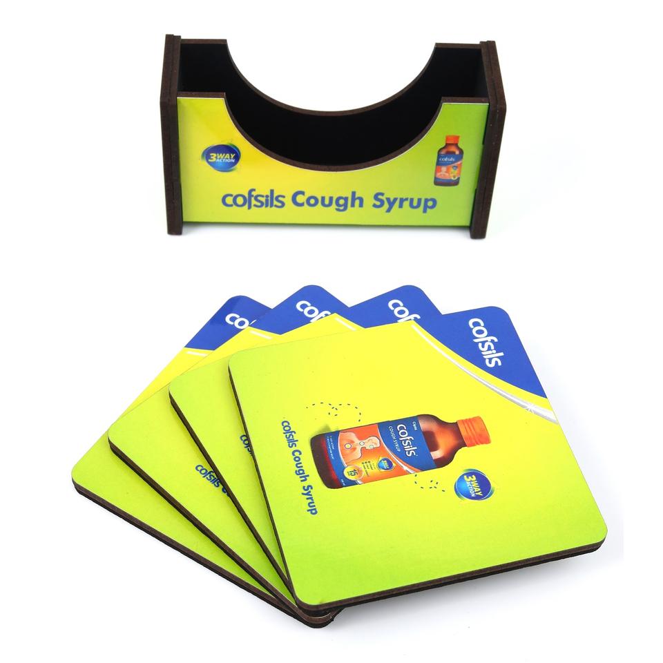 แผ่นรองแก้วคุณภาพพรีเมียม Cofsil (ชุด 4 ชิ้น) พร้อมขาตั้งแบบกำหนดเอง (พร้อมกล่อง) ทำจาก MDF เคลือบเงาสูง พร้อมแผ่นรอง EVA