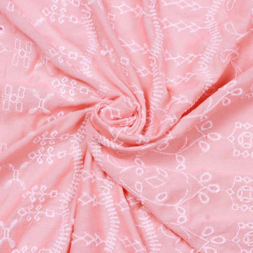 Peach Eyelet Embroidered Hosiery Jersey Knit Fabri