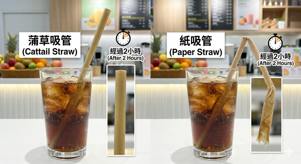 หลอดดูดน้ำจากหญ้าคุณภาพพรีเมียม ย่อยสลายได้ เป็นมิตรกับสิ่งแวดล้อม ขนาด 200 มม. แบบ Cattail บรรจุ 10/20 ชิ้นต่อชุด ใช้ได้ทั้งเครื่องดื่มร้อนและเย็น