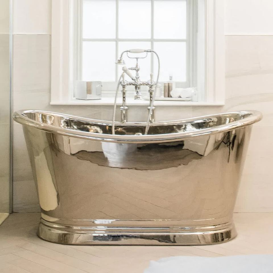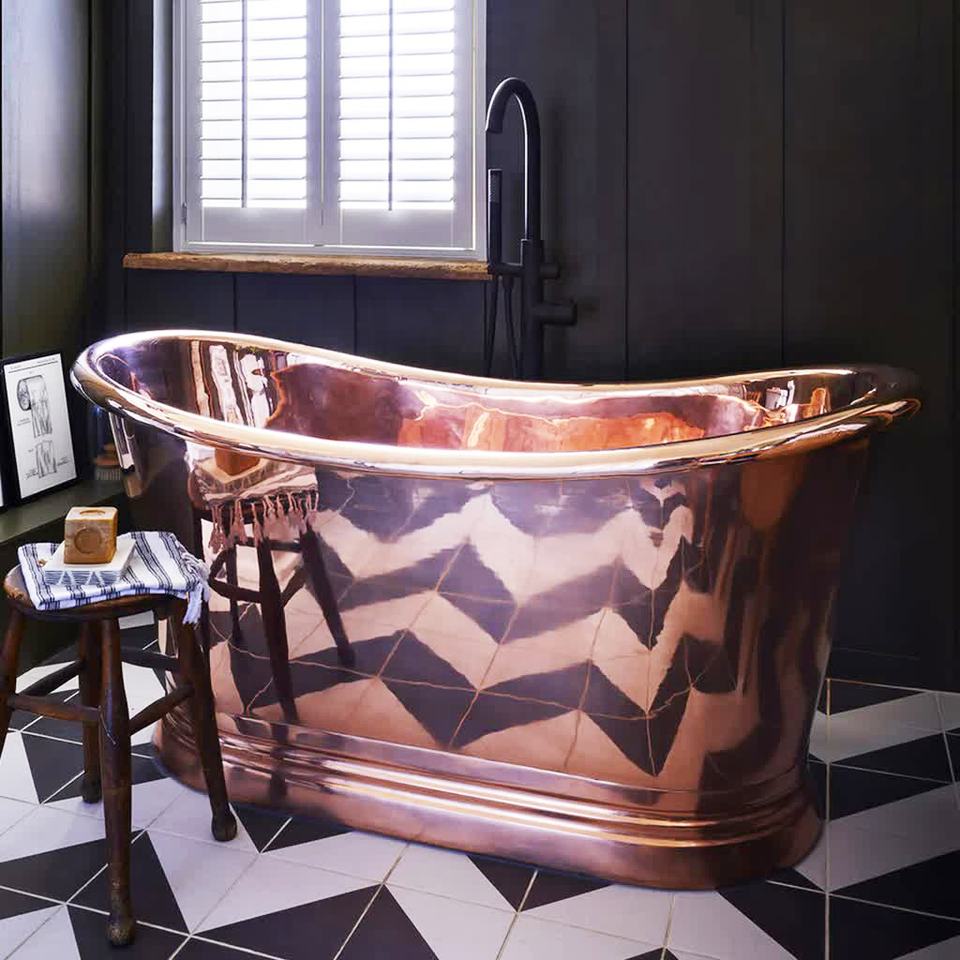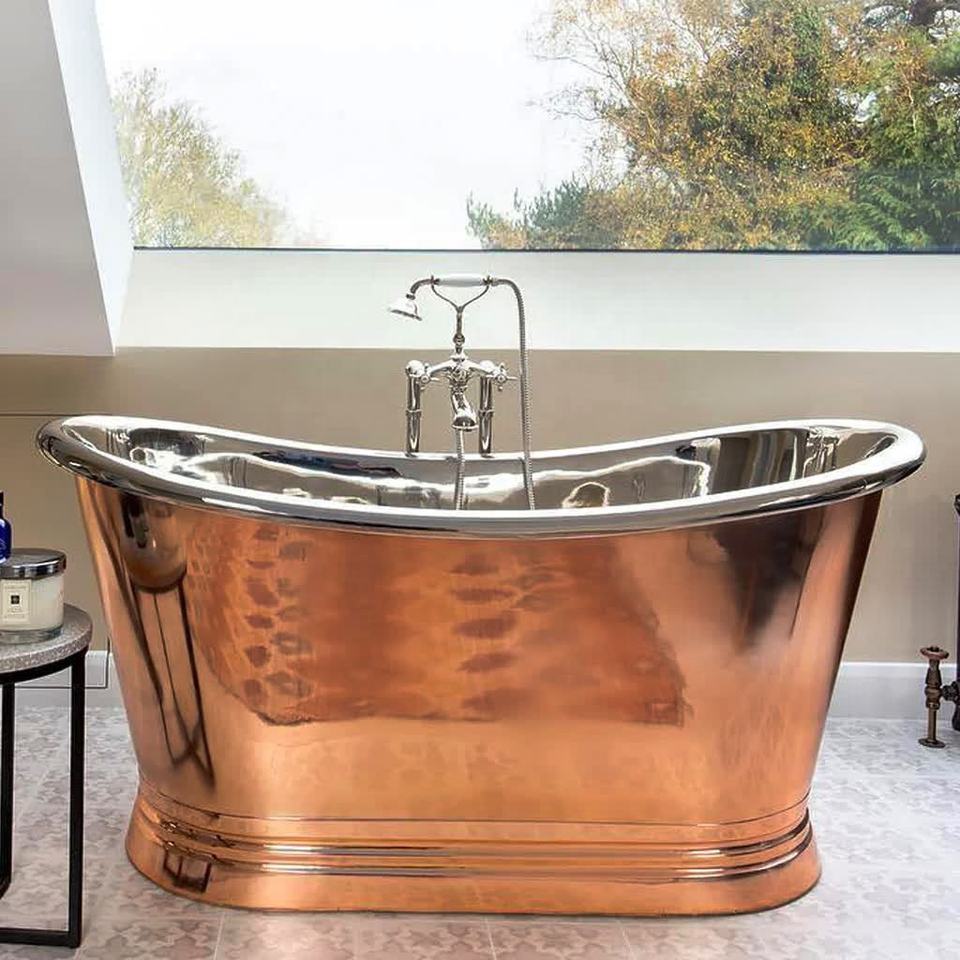อ่างอาบน้ำทองแดงคุณภาพพรีเมียมแบบลอยตัวสำหรับใช้ในห้องน้ำ สไตล์โมเดิร์น อ่างอาบน้ำทองแดงเคลือบนิกเกิลโบราณสำหรับโรงแรม